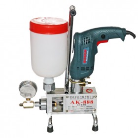 四川堵漏加固材料  廠家直銷 AK-888高壓灌注機  高壓灌漿 聚氨酯注漿機 水泥灌漿機 灌注機 詳細信息 防水堵漏高壓注漿機,是一種用于結(jié)構(gòu)高壓化學灌漿,使用單液化學灌漿材料的專業(yè)機種,有超高壓力不需氣壓源,施工快速。機身本體僅重5公斤,攜帶省力移動方便。它徹底解決了依賴傳統(tǒng)手壓氣源作動力及攜帶笨重機械的不便;結(jié)構(gòu)設計科學簡易,不需特殊訓練即可維修,并新添加了人性化的自吸進料系統(tǒng)。其利用機械的動力,可在3-6秒內(nèi)提升至4500psi(300kg/cm2)以上工作壓力,將液體的止水劑可有效灌注至0.1mm的細微裂縫中,施工效率較傳統(tǒng)技術(shù)快三倍以上,防水止漏效果更為持久有效。是建筑工程、地下工程、水利工程、環(huán)保工程、市政、地鐵、隧道、涵洞工程止?jié)B堵漏施工、裂縫補強的設備,是專業(yè)止水施工者佳的選擇    特點:便攜:體積小、重量輕(機身本體重7.5kg)、攜帶方便、操作簡單。高 效:可在幾秒內(nèi)達到0---50Mpa工作壓力,工藝先進、省時、省力、效率高。安 全:技術(shù)可靠、結(jié)構(gòu)合理、使用安全。壓力持續(xù):持續(xù)高壓使藥劑可有效將砼結(jié)構(gòu)內(nèi)微隙、微縫、微孔、毛細填充堵塞。結(jié)構(gòu)無損:對砼裂縫直接安裝注漿嘴進行注漿,不剔槽,不埋管,對結(jié)構(gòu)無損。帶水堵漏:對各種縫隙滲漏、蜂巢滲漏、地下涌水,能直接帶水注漿堵漏。漿液可有效注到裂縫深處。配套使用材料范圍廣泛:聚氨酯、環(huán)氧樹脂、丙烯酸樹脂等無顆粒狀低黏度漿液材料均可使用。多功能:一機多用、堵漏注漿、固結(jié)注漿、裂縫補強注漿。耐用:高壓力50Mpa時機身零件不變形。保養(yǎng)簡單、維修方便、堅固耐用、清洗方便
