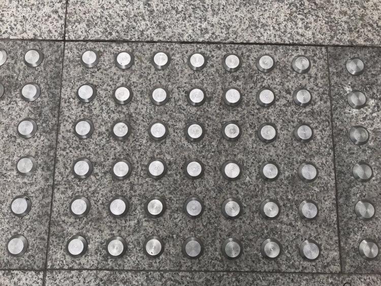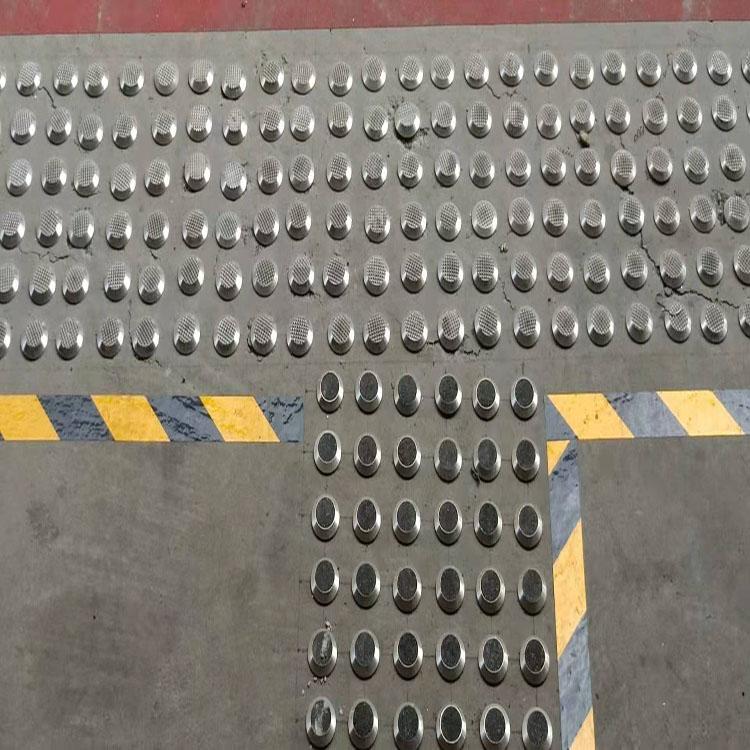 2)提示盲道:呈圓點(diǎn)形,每個(gè)圓點(diǎn)高出地面5mm,可使盲杖和腳底產(chǎn)生感覺(jué),以告知視力殘疾者前方 路線的空間環(huán)境將出現(xiàn)變化 。