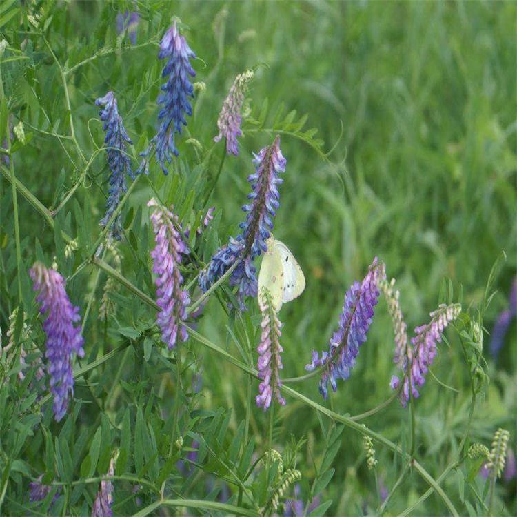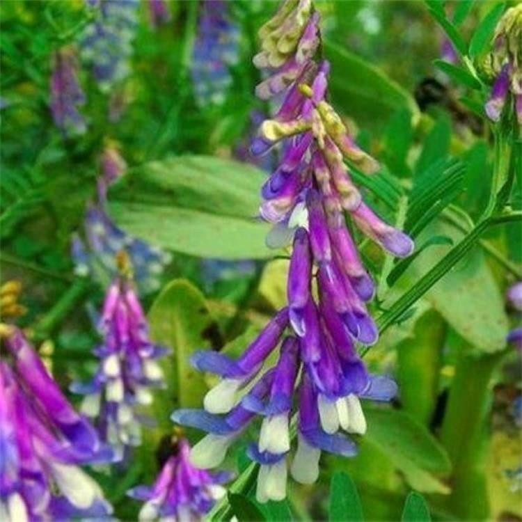 毛苕子是豆科,野豌豆屬一年生草本植物,攀援或蔓生,植株被長(zhǎng)柔毛,長(zhǎng)可達(dá)150厘米,莖柔軟,有棱,多分枝。葉片長(zhǎng)圓形、披針形至線形,先端漸尖,具短尖頭,基部楔形,葉脈不甚明顯。總狀花序腋生,花萼斜鐘形,萼齒近錐形,花冠紫色、淡紫色或紫藍(lán)色,旗瓣長(zhǎng)圓形,翼瓣短于旗瓣;龍骨瓣短于冀瓣。莢果長(zhǎng)圓狀菱形,側(cè)扁,先端具喙。種子球形,表皮黃褐色至黑褐色,4-10月開(kāi)花結(jié)果。