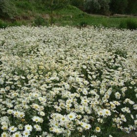********大濱菊(Leucanthemum maximum (Ramood) DC.)是菊科,濱菊屬多年生或二年生草本植物。株高可達(dá)70厘米,全株光滑無毛。莖直立,被長毛,葉片互生,長倒披針形,先端鈍圓,基部漸狹,頭狀花序,單生枝端,舌狀花白色,總苞片寬長圓形,先端鈍,7-9月開花結(jié)果。