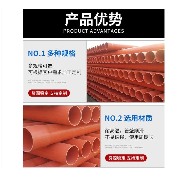 cPVc電力管是硬直實(shí)壁管,內(nèi)、勃壁光滑平整,顏色呈桔紅色,色澤明亮.醒目。