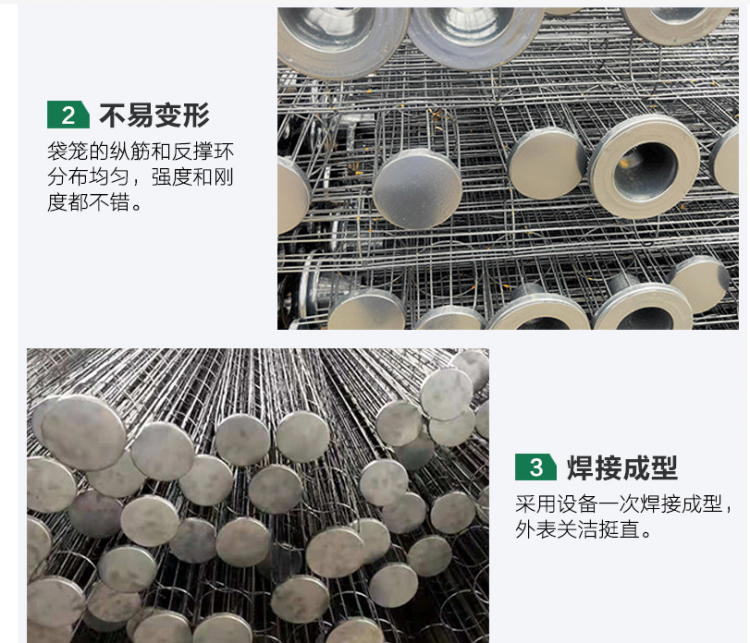 除塵袋籠也稱(chēng)除塵框架,是采用專(zhuān)用設(shè)備一次焊接成型的,其作為除塵濾袋的肋骨,它的質(zhì)量直接影響濾袋的工作狀態(tài)與使用壽命。我公司引進(jìn)先進(jìn)的框架制造設(shè)備,使用高頻焊機(jī)一次焊接骨架成型。采用有足夠強(qiáng)度和鋼度的鐵絲或不銹鋼絲。鍍鋅、噴塑、鍍有機(jī)硅等處理方式。本公司采用有機(jī)硅技術(shù)處理的骨架完全可以替代不銹鋼骨架,可大大降低設(shè)備的維護(hù)成本。并且制造的每一只框架都能符合輕巧、光滑、挺直的要求。