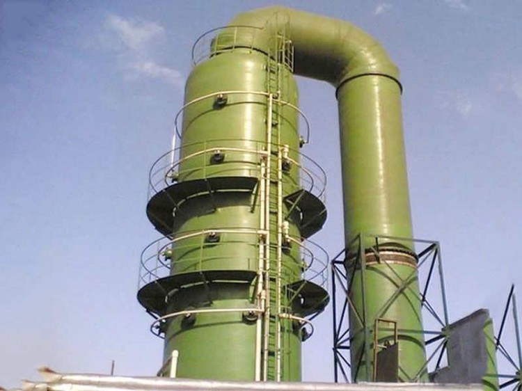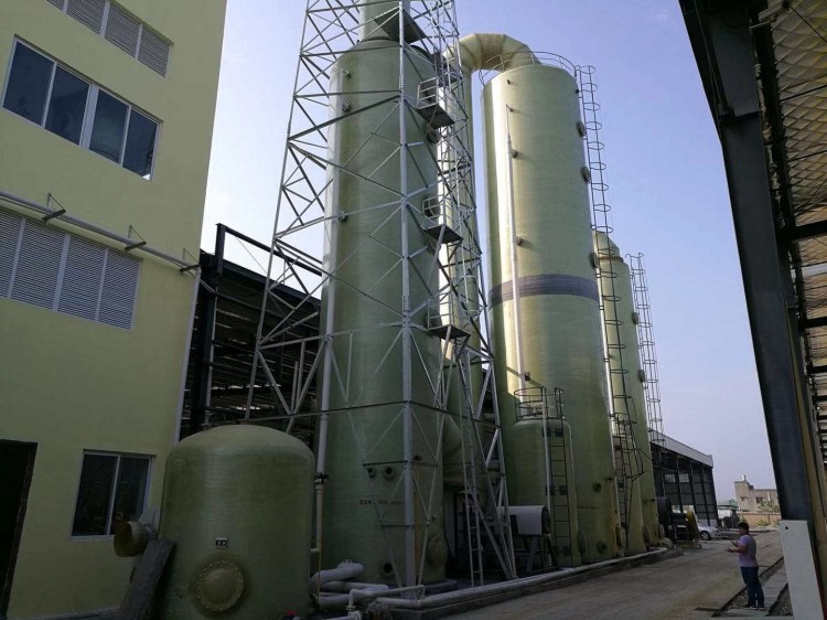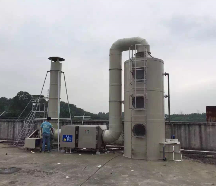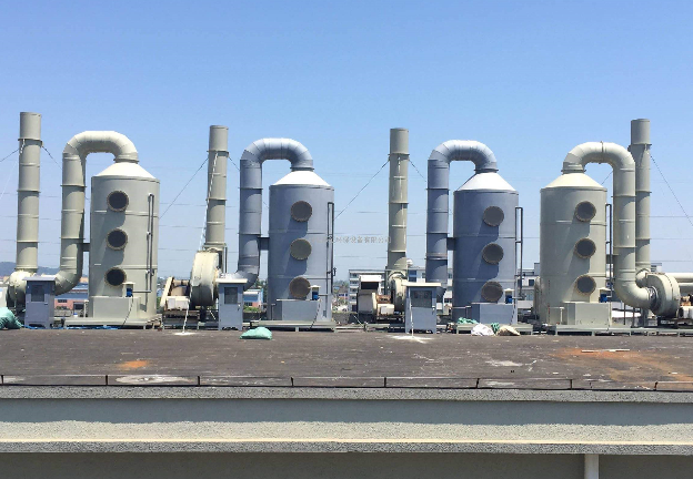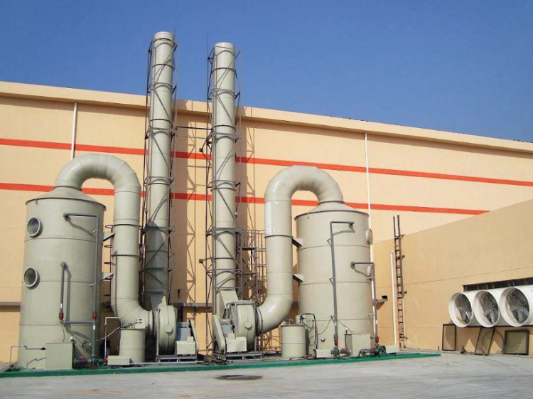 含塵廢氣或者含油廢氣通過(guò)噴淋塔體時(shí),塔體內(nèi)部合適位置(根據(jù)設(shè)計(jì)而定)噴出液態(tài)介質(zhì),有的為堿液,有的為硫酸溶液。如廢氣含有酸性則選擇堿液噴淋中和酸性,如廢氣含堿性則選擇硫酸溶液吸收。具體選擇何等酸堿溶液根據(jù)廢氣性質(zhì)和企業(yè)自身情況而定。無(wú)酸堿但含油、塵廢氣則可通過(guò)循環(huán)水溶液噴淋處理。當(dāng)廢氣從塔體底部進(jìn)入時(shí)就與噴淋塔噴出的噴淋介質(zhì)接觸,接觸后廢氣或者油污被水珠包裹,包裹污染物的水珠再次碰撞表面積增大且重力增大。重力增大的情況下包裹污染物的水滴則在重力影響下落入噴淋塔底部,較重的污染物沉入塔體底部,較輕的污染物則浮于循環(huán)水體表面。