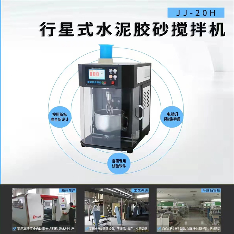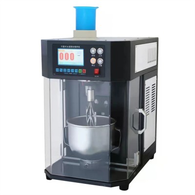 3、按試驗規(guī)程,先將水加入鍋里,再加入水泥,把鍋放在固定架上,上升至固定位置。