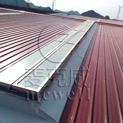 3、避風(fēng)型電動(dòng)天窗附有成品避風(fēng)罩,避風(fēng)罩由鋼質(zhì)骨架和彩色鋼板構(gòu)成,固定在天窗基座上;
