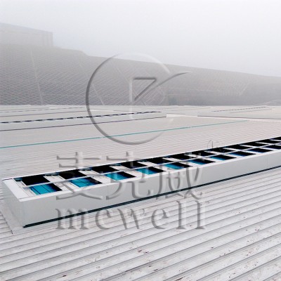 屋脊自然通風(fēng)器的骨架為型材壓制成形,可方便的進(jìn)行模塊化單元組合,滿(mǎn)足不同尺寸要求。該類(lèi)通風(fēng)天窗高度較低,其特點(diǎn)為自重輕、對(duì)屋面產(chǎn)生的荷載小,抗風(fēng)性好,相對(duì)于大型高容量自然通風(fēng)天窗,其結(jié)構(gòu)耗鋼量較少,可以降低用戶(hù)總投資,是工業(yè)企業(yè)屋面通風(fēng)天窗的常用選型。