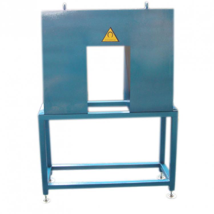 本退磁機(jī)磁路加上交流電流后,在U字形磁路中產(chǎn)生交變退磁磁場(chǎng),當(dāng)工件從U字形交變場(chǎng)中勻速通過(guò)時(shí),作用到工件上的磁感應(yīng)強(qiáng)度線性衰減而使工件退磁。