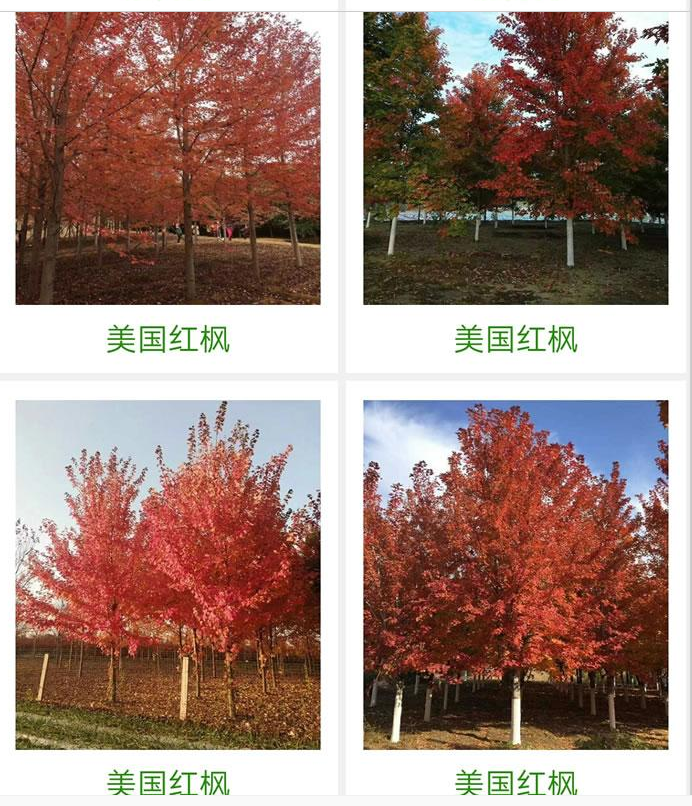 美國(guó)紅楓原產(chǎn)美國(guó)北部以及加拿大大部分地區(qū)。落葉大喬木。生長(zhǎng)較快,成年高樹12-18米,冠幅12米,適應(yīng)多種范圍的土壤類型生長(zhǎng)。春天開花,花紅色。其秋季色彩奪目,樹冠整潔,現(xiàn)被廣泛應(yīng)用于公園、小區(qū)、街道栽植,既可以園林造景又可以做行道樹,深受人們的喜愛,是近幾年引進(jìn)的美化、綠化城市園林的理想珍稀樹種之一。也是可以用做行道樹的彩葉樹種。該樹種生長(zhǎng)迅速,是所有紅楓品種中生長(zhǎng)很快的品種。美國(guó)紅楓有許多改良園藝品種,比較有代表的如:秋焰槭、十月光輝、落日紅楓、夕陽(yáng)紅、秋天烈火、阿姆斯郎、北木等。