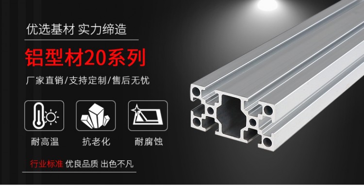 在流水線鋁型材中又分為兩個系列為國標和歐標、其國標鋁型材為:30系列、40系列、50系列、60系列、80系列等。歐標鋁型材規(guī)格有16系列、20系列、30系列、35系列、40系列、45系列、50系列、60系列、80系列、90系列等。