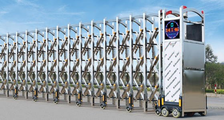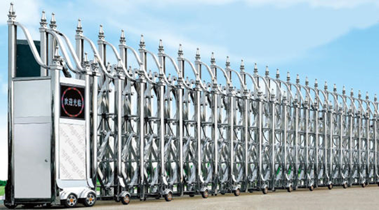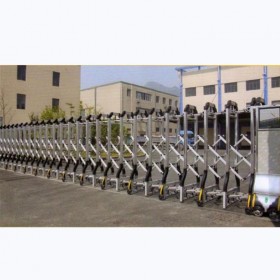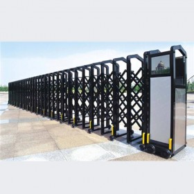 伸縮門(Retractable door),就是門體可以伸縮自由移動(dòng),來控制門洞大小、來控制行人或車輛的攔截和放行的一種門。伸縮門主要由門體、驅(qū)動(dòng)電機(jī),滑道、控制系統(tǒng)構(gòu)成。門體采用優(yōu)質(zhì)不銹鋼及鋁合金專用型材制作,采用平行四邊形原理鉸接,伸縮靈活行程大。驅(qū)動(dòng)器采用特種電機(jī)驅(qū)動(dòng),蝸桿蝸輪減速,并設(shè)有自動(dòng)離合或手動(dòng)離合器,自動(dòng)離合停電時(shí)可自動(dòng)啟閉,手動(dòng)離合停電時(shí)可手動(dòng)啟閉,控制系統(tǒng)有控制板,按鈕開關(guān),另可根據(jù)需求配備無線遙控裝置。
