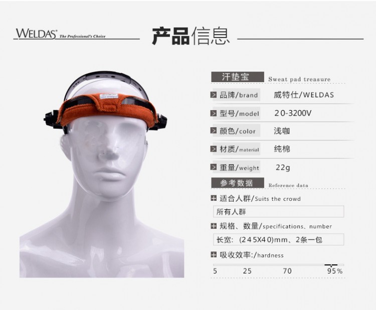 威特仕20-3100V吸汗墊電焊帽汗帶汗墊寶帽墊吸汗止汗戶外運(yùn)動(dòng)汗巾
