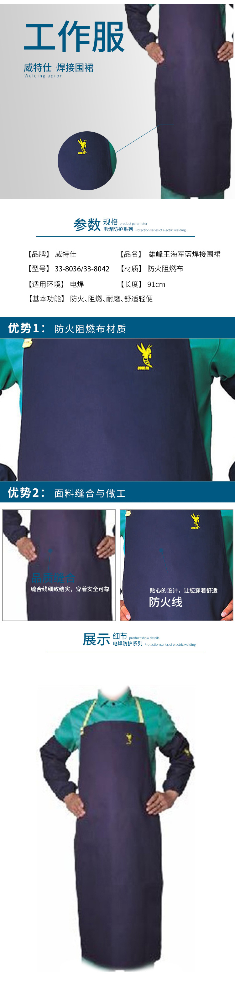 威特仕 33-8036/33-8042雄蜂王海軍藍燒焊圍裙 耐油阻燃焊工電焊圍裙