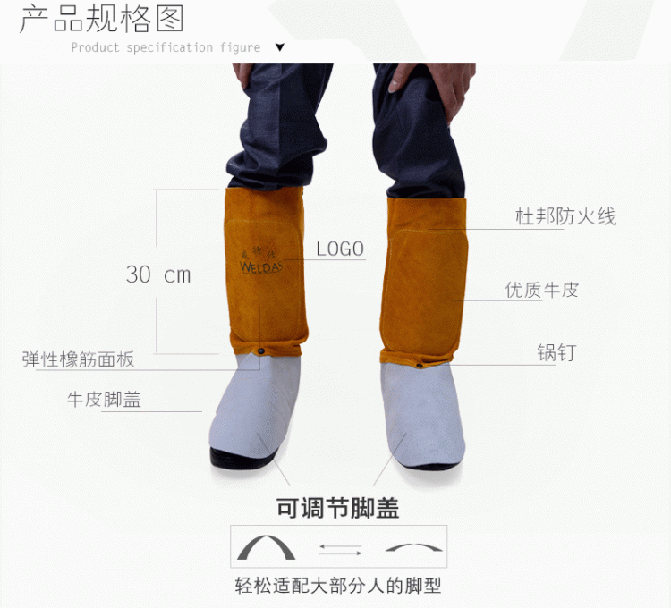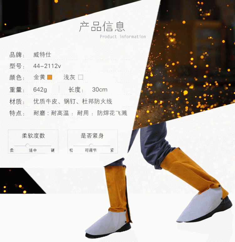 產(chǎn)品名稱:威特仕44-2112電焊腳蓋 金黃色牛皮護(hù)腿 阻燃耐高溫焊工護(hù)腳蓋