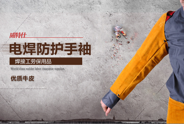 產(chǎn)品名稱:威特仕44-2022牛皮袖套金黃色皮手袖電焊手袖加長(zhǎng)隔熱防護(hù)袖套