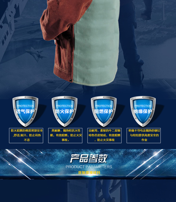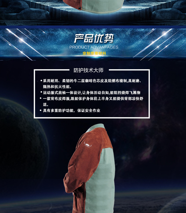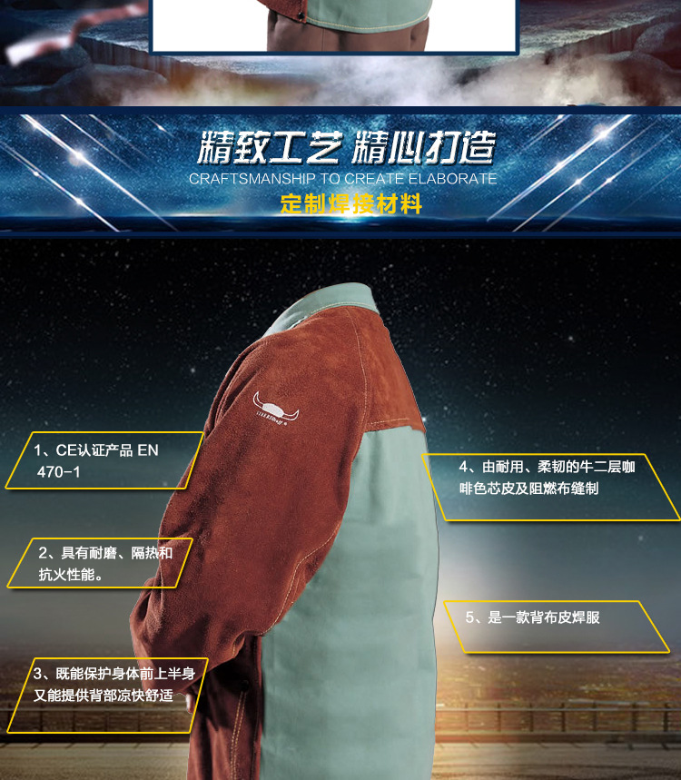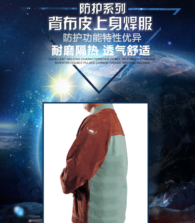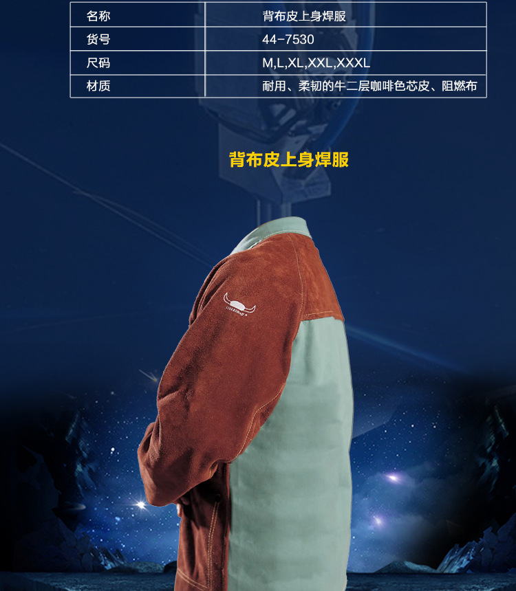 產(chǎn)品名稱:威特仕44-7530牛皮阻燃棉布防火花飛濺燙防輻射電焊接勞保工作服
