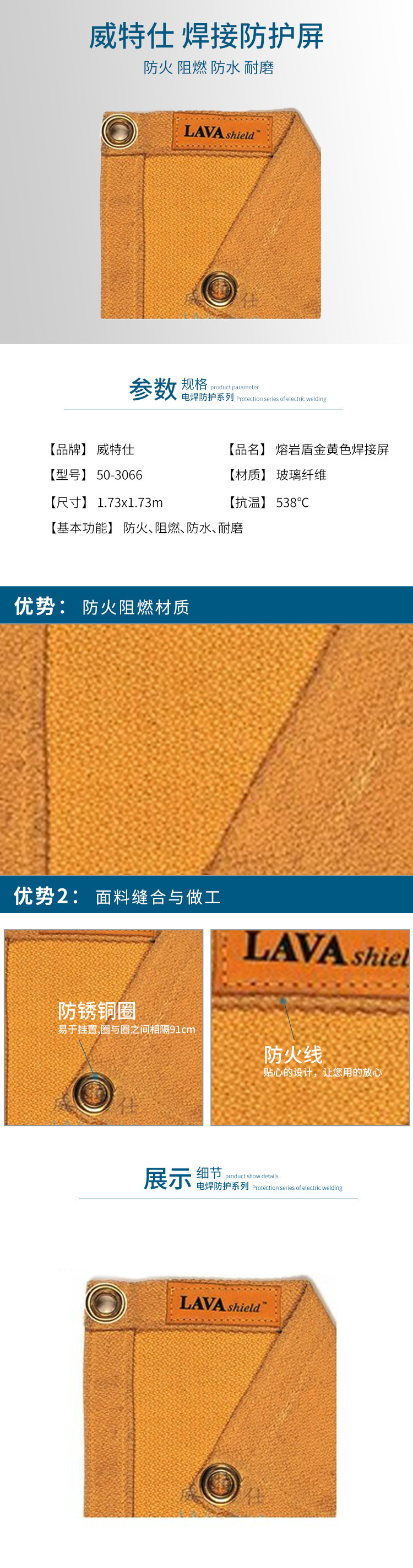 威特仕 50-3066 熔巖盾 金黃色玻璃纖維 耐高溫 煤焊防護(hù)毯