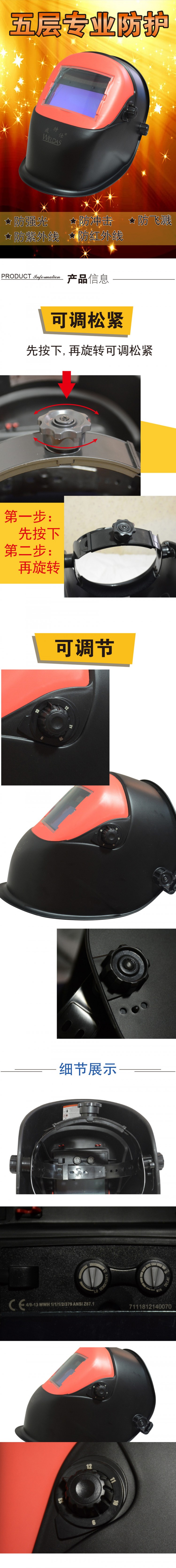 產(chǎn)品名稱:威特仕608.0002自動變光面罩電焊面罩自動變光太陽能防護面罩