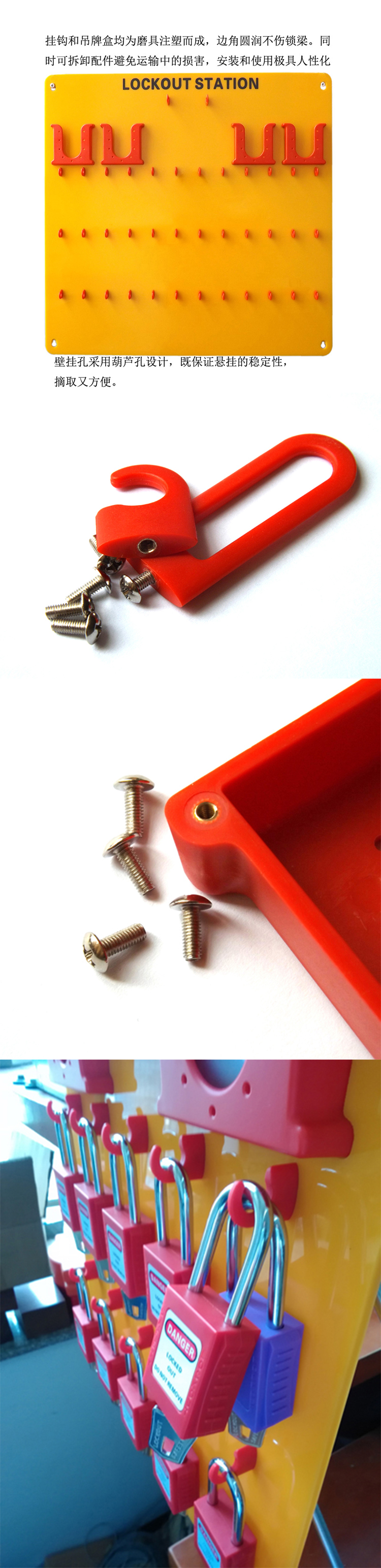 4.可存放36把安全掛鎖,6把六聯(lián)鎖具,36張吊牌,使用金黃色超厚鏡面光澤亞克力板,配合特色工程塑料掛鉤,堅(jiān)韌,不傷鎖具,美觀,拆卸方便易更換,避免運(yùn)輸過(guò)程損壞,每個(gè)掛鉤可以懸掛2把掛鎖,超大的容量提供整體的存儲(chǔ)功能