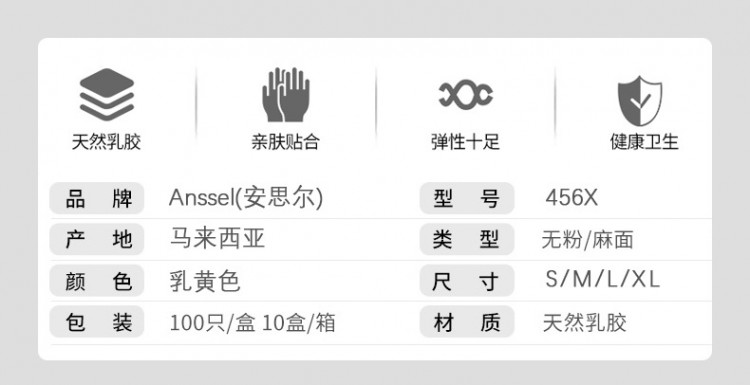 產品名稱:ansell/安思爾 456X一次性手套乳膠加厚食品級餐飲家務清潔美容橡膠手套