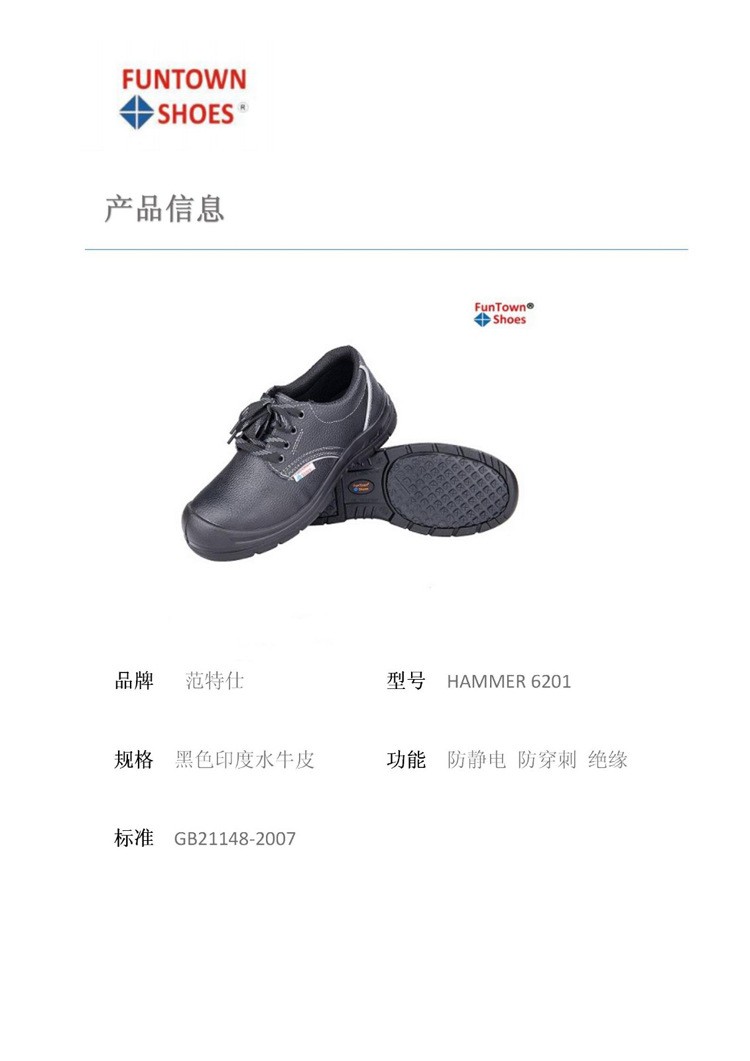 產(chǎn)品名稱:funtownshoes/范特仕 6201P 防砸防滑防靜電鞋 防穿刺安全鞋 印度水牛皮勞保鞋 灰色縫線