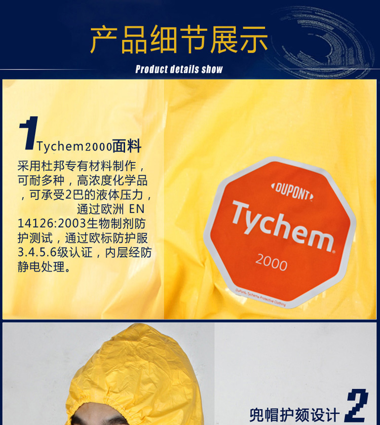 產(chǎn)品名稱:杜邦Tychem C級化學(xué)防護(hù)服防酸堿農(nóng)藥噴漆防護(hù)服有毒粉塵防塵服