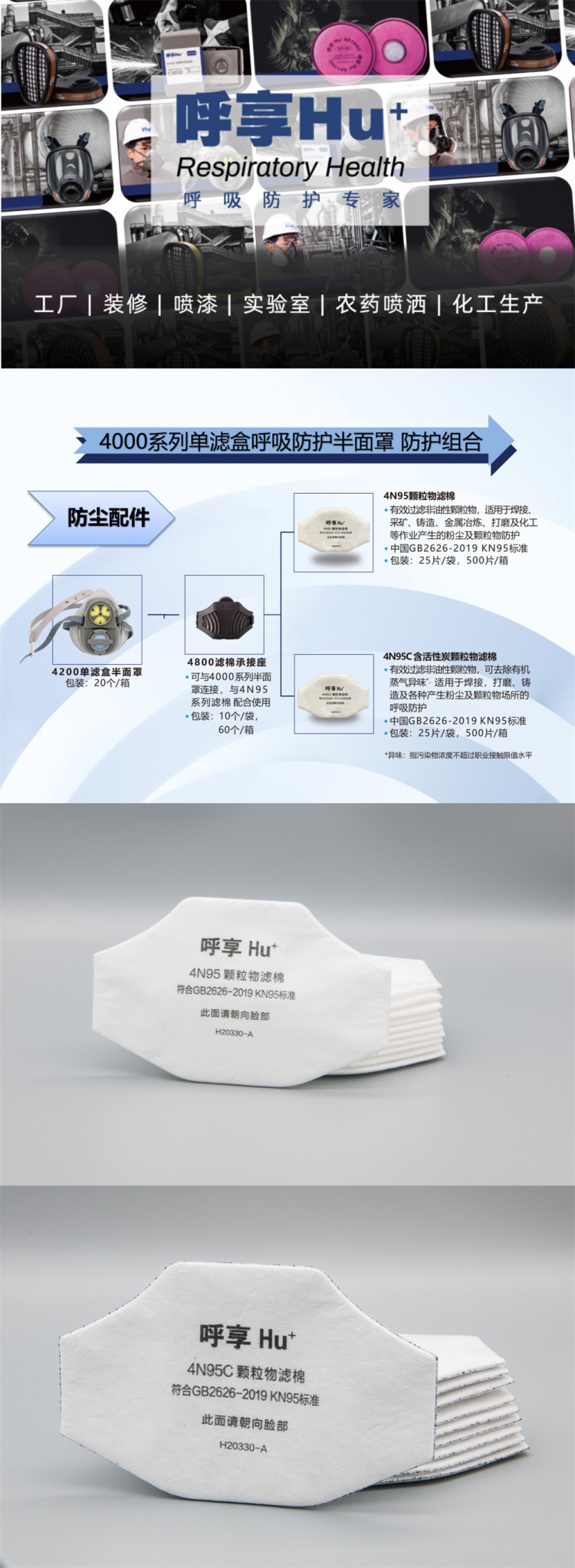 產(chǎn)品名稱:呼享4N95C活性炭顆粒物濾棉焊接鑄造打磨粉塵防護KN95去除有機蒸汽異味過濾棉