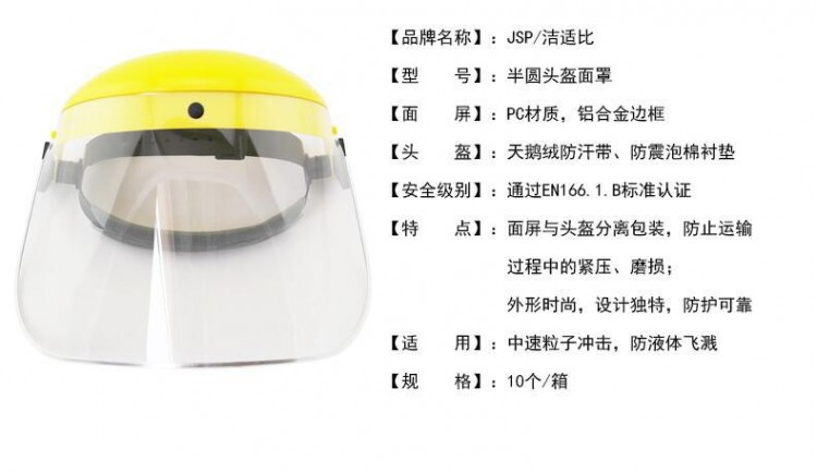 產(chǎn)品參數(shù) 產(chǎn)品名稱:JSP/潔適比 JSP03-3230聚碳酸酯面屏防護面罩防飛濺安全透明面屏