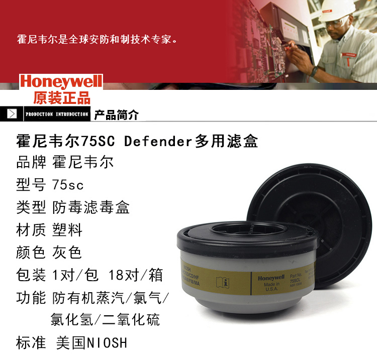 產(chǎn)品名稱:honeywell/霍尼韋爾75SC 綜合氣體濾毒盒 防有機無機蒸氣 酸性氨氣硫化氫氣濾盒