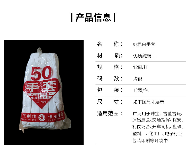 產(chǎn)品名稱:作業(yè)手套禮儀白手套演出表演手套防汗布手套棉布手套