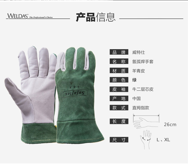 產(chǎn)品名稱:現(xiàn)貨供應(yīng)抵抗熱輻射weldas/威特仕10-1006上等羊青皮工廠氬弧焊焊工手套