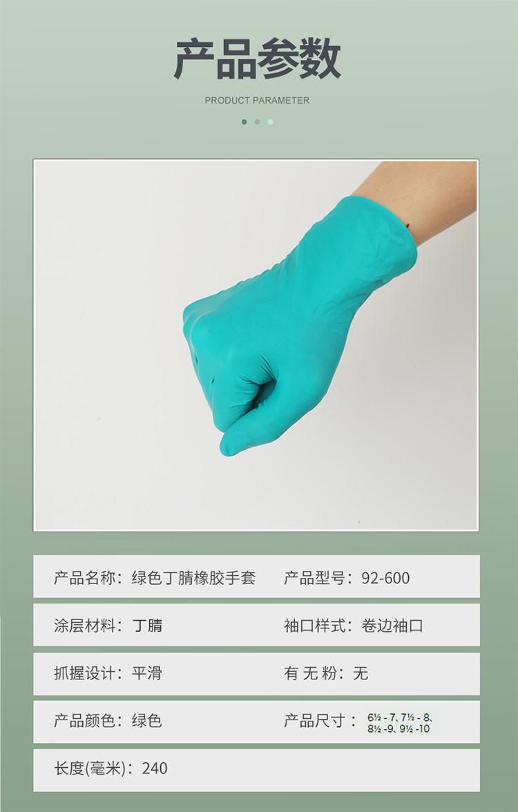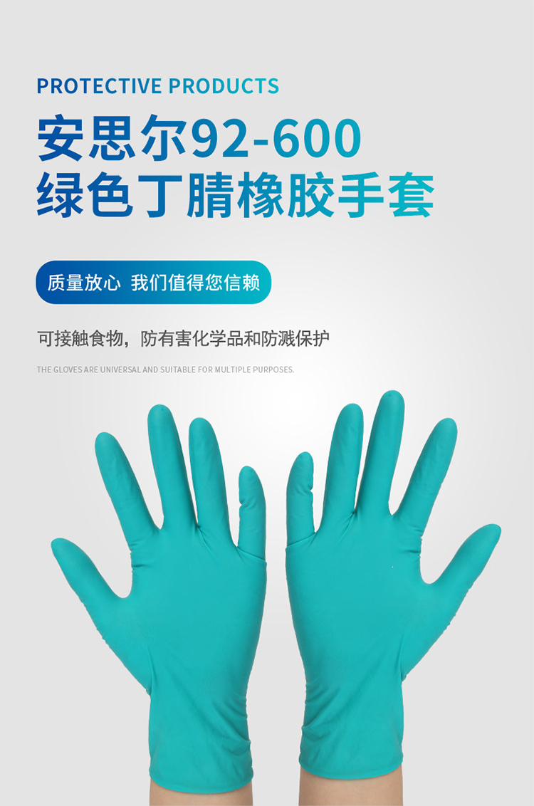 Ansell 92-600 一次性綠色加厚丁腈橡膠手套的詳細(xì)信息