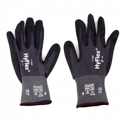 ansell/安思爾11-840黑色發(fā)泡丁腈涂層手套耐磨款手套涂膠耐油手套