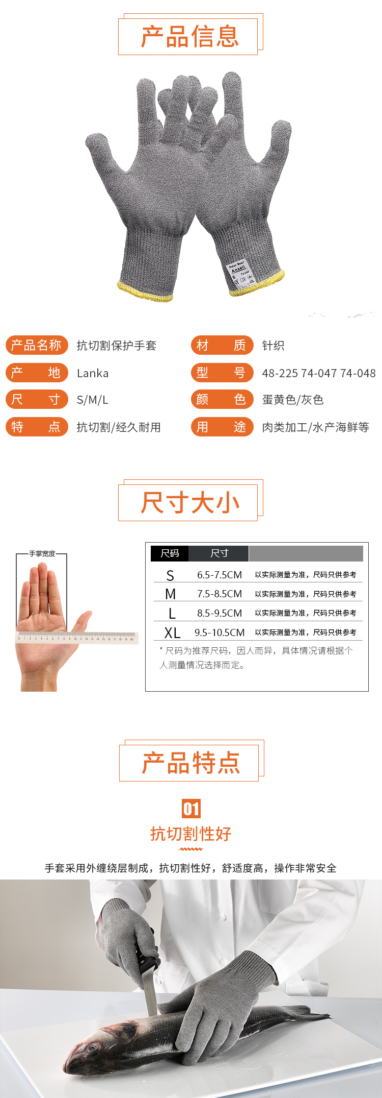 ansell/安思爾74-048 手套無(wú)分左右手設(shè)計(jì)Dyneema食品加工手套