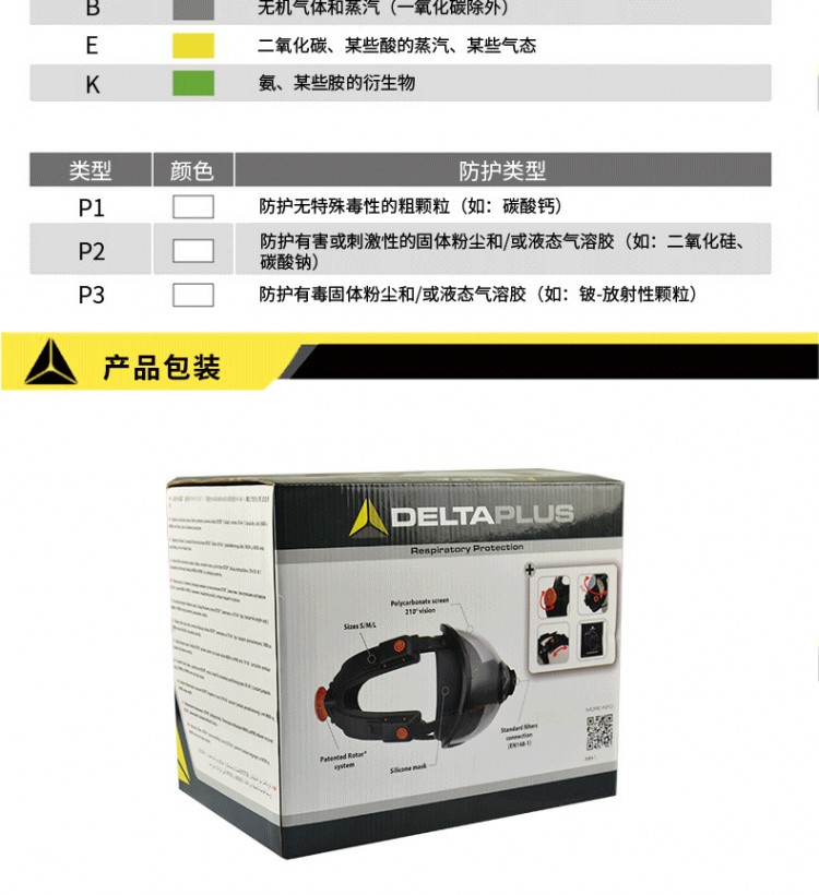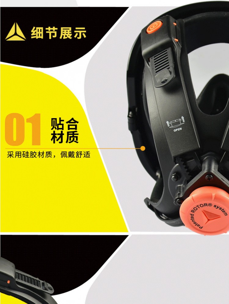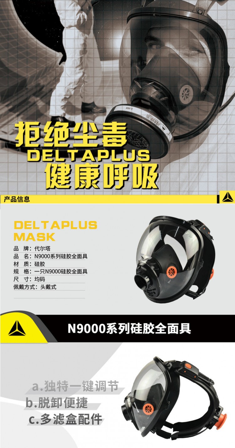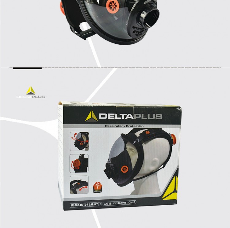 產(chǎn)品名稱:deltaplus/代爾塔105007 M9200硅膠全臉面罩防塵防有毒氣體面罩一鍵式旋鈕調(diào)節(jié)