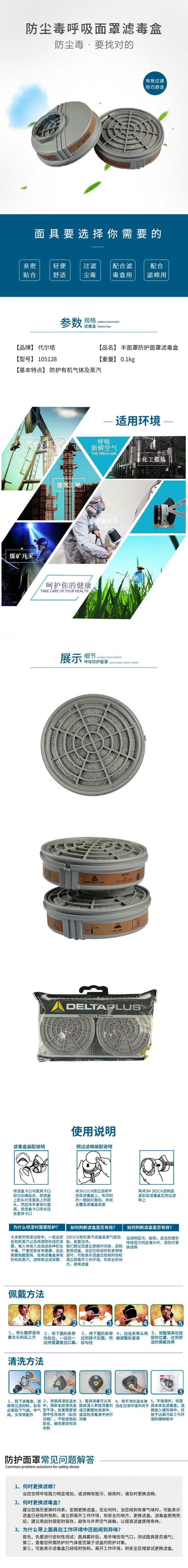 產品名稱:deltaplus/代爾塔105128 濾毒盒半面罩配件化工噴漆裝修防甲醛M6000