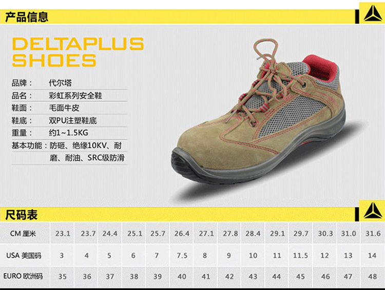 產(chǎn)品名稱:deltaplus/代爾塔301211安全鞋絕緣12KV彩虹系列輕便透氣勞保鞋