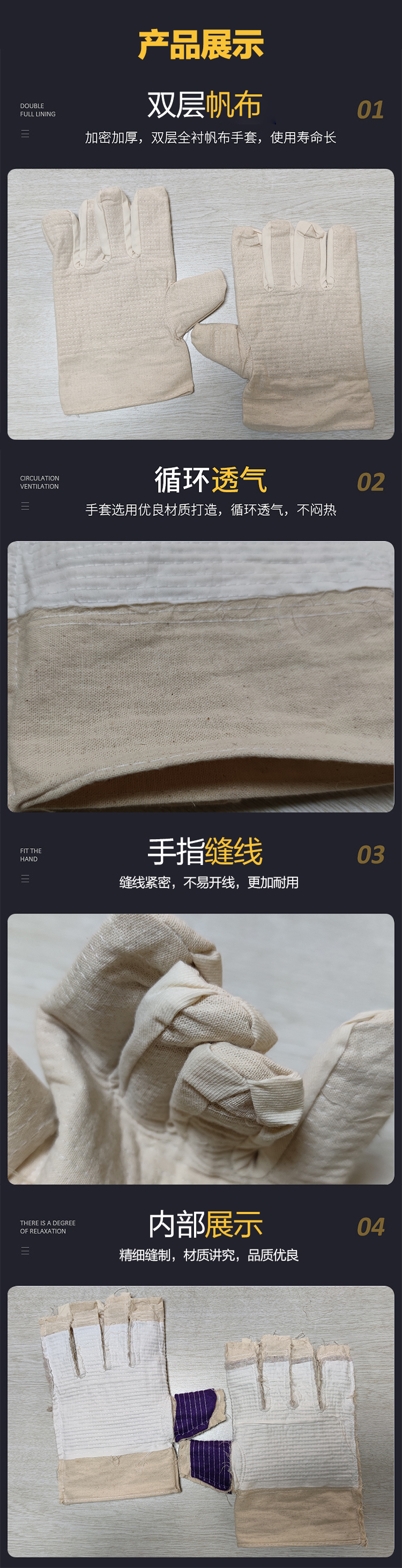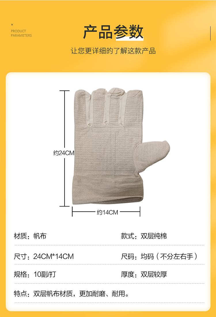 產(chǎn)品名稱:卡其雙層棉帆布手套 機械加工防護 勞保焊工手部防護手套批發(fā)