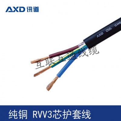 RVV全稱銅芯聚氯乙烯絕緣聚氯乙烯護套軟電線,又稱輕型聚氯乙烯護套軟線,俗稱軟護套線,是護套線的一種;額定電壓300V/500V,芯數(shù)從2芯到24芯之間按國標分色,兩芯以上絞合成纜(含普通型、阻燃型、低煙無鹵型、耐火型、交聯(lián)型)。
