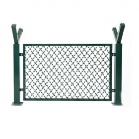監(jiān)獄防護(hù)網(wǎng)又稱監(jiān)獄護(hù)欄網(wǎng)或監(jiān)獄隔離柵,主要是采用高強(qiáng)度的刀片刺網(wǎng)與普通防護(hù)網(wǎng)的結(jié)合,由V型支架立拄,加強(qiáng)型焊接片網(wǎng),安全防盜連接件和刀片刺網(wǎng)組成。近年來(lái),被廣泛應(yīng)用在監(jiān)獄、機(jī)場(chǎng)、軍事基地等高安全場(chǎng)所。