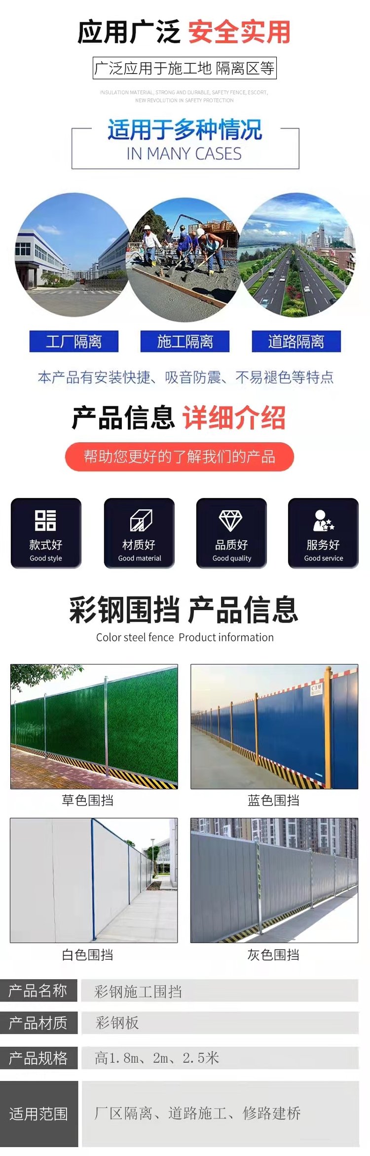 1、此圍擋適用于主城區(qū)、新市區(qū)、建成區(qū)和重要集鎮(zhèn)市政基礎(chǔ)建設(shè)新建、改建、擴(kuò)建和大型維修養(yǎng)護(hù)工程、大型 城市道路挖掘工程、城市道路基建占用和政府指定的養(yǎng)護(hù)挖掘工程。