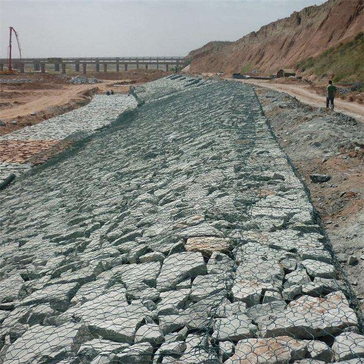 詳細(xì)信息 鉛絲石籠網(wǎng)是一種柔性的護(hù)坡結(jié)構(gòu),使用場(chǎng)所非常廣泛,那么鉛絲石籠網(wǎng)護(hù)坡都有哪些好處呢?下面小編為大家詳細(xì)講解下。首先是調(diào)節(jié)和疏導(dǎo)江河和大水。河水災(zāi)害通常以水流沖刷河岸為主要形式,造成洪災(zāi)、生命財(cái)產(chǎn)損失和大量土壤侵蝕。處理上述問題時(shí),應(yīng)用鉛絲石籠網(wǎng)護(hù)坡可對(duì)河床及河岸進(jìn)行長期保護(hù),是一種較為理想的方法之一。鉛絲石籠網(wǎng)是經(jīng)常用于河道護(hù)坡工程,所以有河道鉛絲石籠網(wǎng)護(hù)坡的美稱,有時(shí)也稱河道鉛絲籠護(hù)坡。河道鉛絲石網(wǎng)籠除了護(hù)坡外,還經(jīng)常用來河道護(hù)底、橋梁防護(hù)、路基防護(hù)、擋墻加固、防汛防洪等工程。河道鉛絲石籠網(wǎng)護(hù)坡采用髙鍍高爾凡低碳鋼絲通過 石籠網(wǎng)機(jī)進(jìn)行編織,根據(jù)使用的需要可以選擇更具有防腐性的包塑絲延長使用壽命。