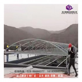 圓拱型電動(dòng)采光排煙天窗不再采用硅膠、膠帶填縫堵漏,避免硅膠、膠帶老化開裂造成的漏水隱患。