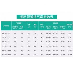 產(chǎn)品參數(shù) 產(chǎn)品名稱: 成都綠島風(fēng)換氣扇衛(wèi)生間天花管道排風(fēng)扇KTV包廂塑料排氣扇BPT10-22-BH