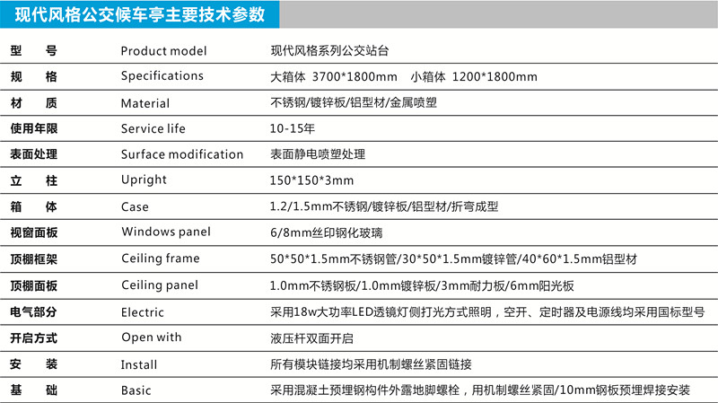 產(chǎn)品參數(shù) 產(chǎn)品名稱: 公交站臺(tái)廠家 智能公交站臺(tái) 現(xiàn)代公交候車亭