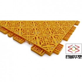 1、 室外運動地板表面為雪花紋落空面,耐沖擊性聚丙烯,多個密集支撐腳。模塊含有彈性鎖扣系統(tǒng),提供機械的水平緩沖性能;