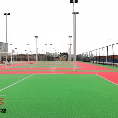 懸浮式拼裝地板也稱組合式運動地板,是體育運動地板的運動場地面層材料,成品為塊狀,可直接鋪裝在水泥或瀝青的基礎(chǔ)表面,無需粘接,每一塊地板之間用獨特的鎖扣進(jìn)行連接,安裝十分的簡單,還可以隨意拆卸。