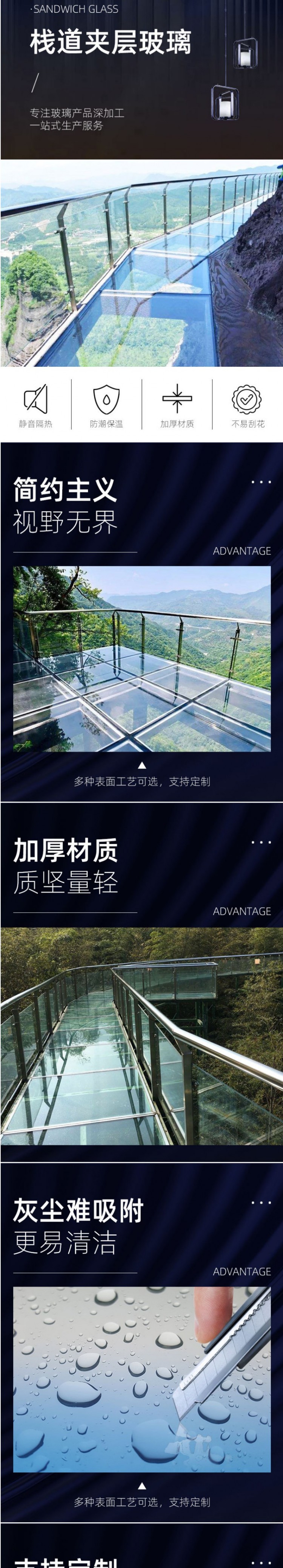 瀏覽次數(shù):0景區(qū)網(wǎng)紅玻璃棧道 高空防滑防裂專業(yè)工程設(shè)計自帶特效 |