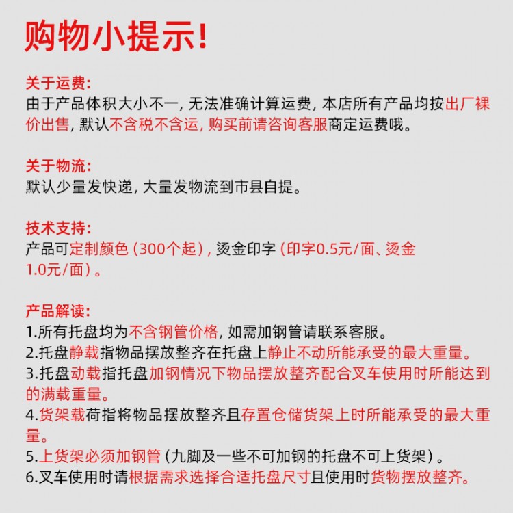 詳細(xì)信息 防滲漏托盤有超大的儲(chǔ)漏空間可放4桶,單面可用,不用擔(dān)心危廢液體泄漏。防滲漏托盤底部有排污口,環(huán)保,不滲漏,托盤采用雙層加厚側(cè)邊框及中心承重結(jié)構(gòu),堅(jiān)固耐用,防撞更安全。托盤墊板表面有防滑紋理,不用擔(dān)心物品滑落,適合機(jī)動(dòng)叉車、550和680液壓叉車使用,是您身邊收集危廢液體的好幫手!