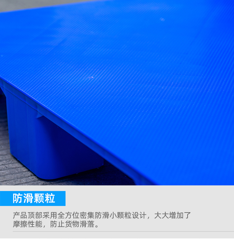 2.平面款易清洗,面部采用密集小顆粒防滑設(shè)計(jì),有效增加貨物與托盤之間的摩擦力,提高防滑安全性能