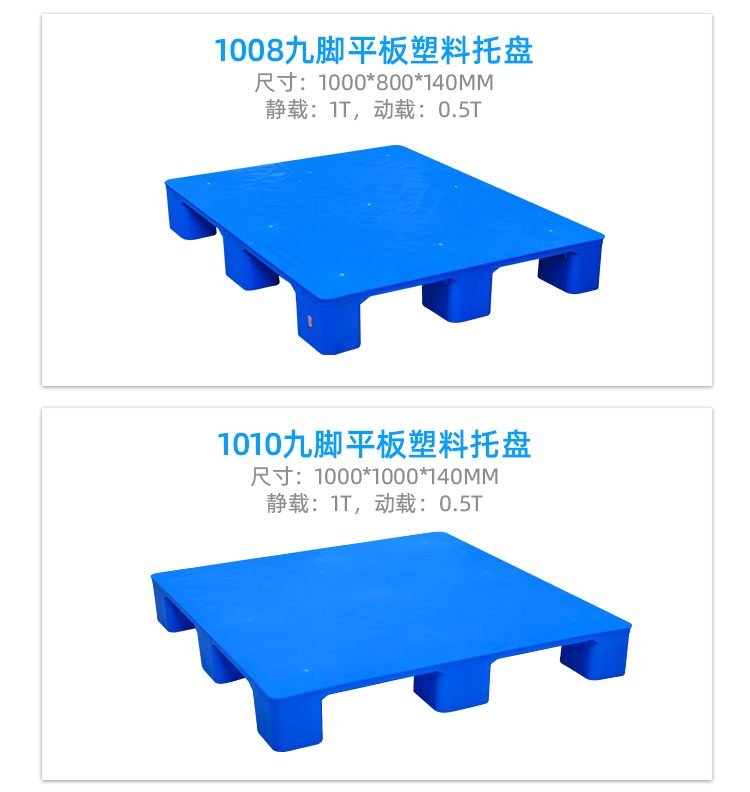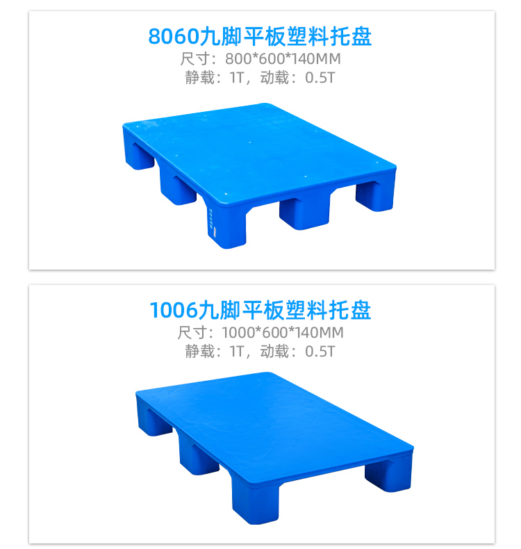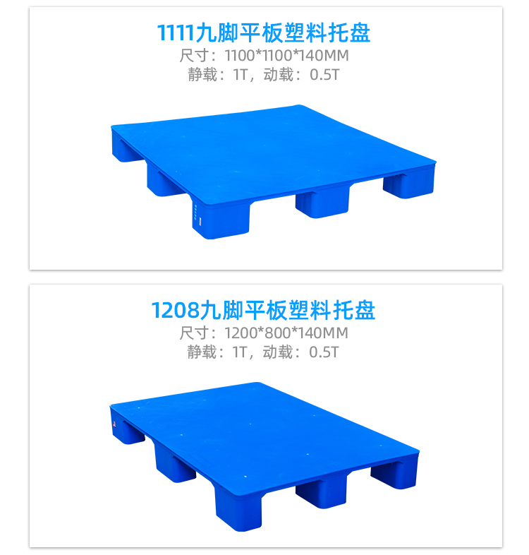 九腳托盤大多型號(hào)都為輕型的塑料托盤,不易用于上貨架或者較重貨物的周轉(zhuǎn)使用,大多數(shù)情況下九腳托盤都是用來(lái)輕型貨物的周轉(zhuǎn),倉(cāng)庫(kù)貨物墊倉(cāng)板防潮使用